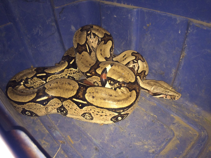 Officers arrived to find a five-foot red-tailed boa constrictor.