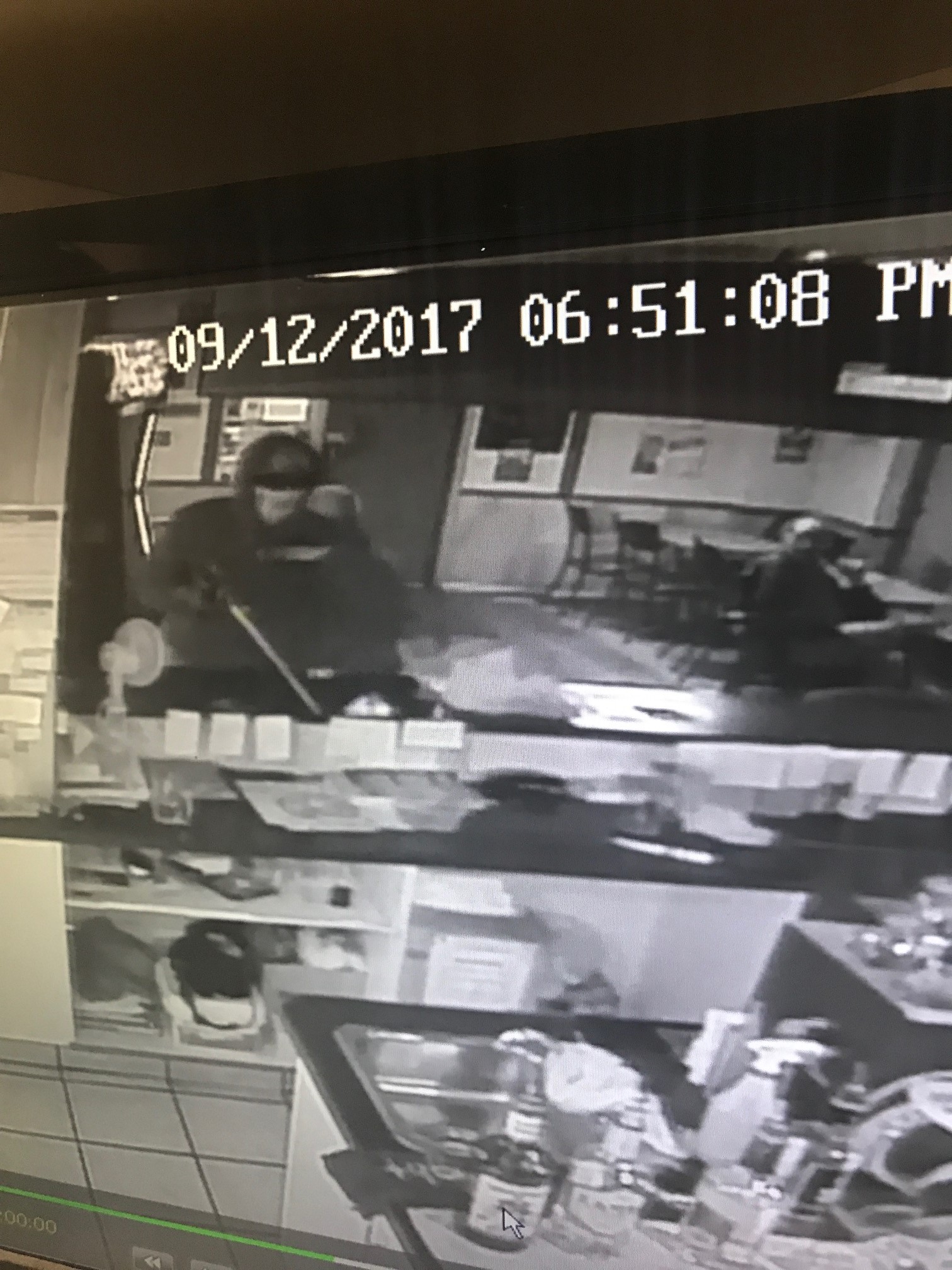 The man is described as about 6 feet tall with a slim build. At the time, police said he was wearing dark shoes with white soles, a dark-coloured hoodie with a white design on the left breast, a dark-coloured hat with a design on the front, black sunglasses, dark gloves and a white and dark-coloured tight bandana on his face.