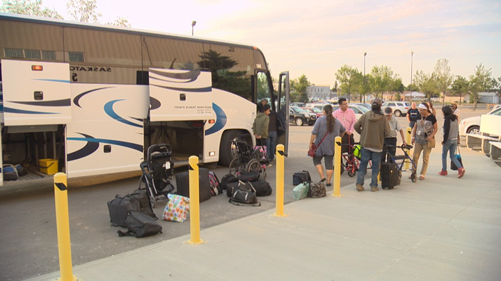 Buses loaded up residents at the Travelodge hotel and Henk Ruys Soccer Centre in Saskatoon on Thursday morning to start the journey home.