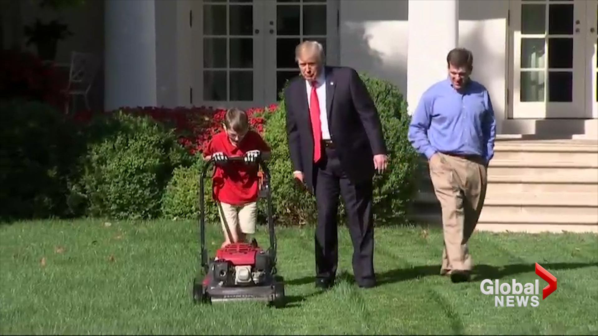 U.S. President Donald Trump got what you might call a grassroots display of support at the White House, welcoming an 11-year-old Virginia boy who offered to help cut the lawn.