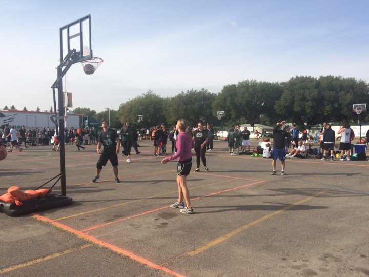 King and his team are one of 53 groups that took to the court on Saturday at the Market Mall parking lot.