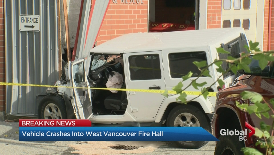 A crash in West Vancouver has caused significant damage to a local fire hall.
