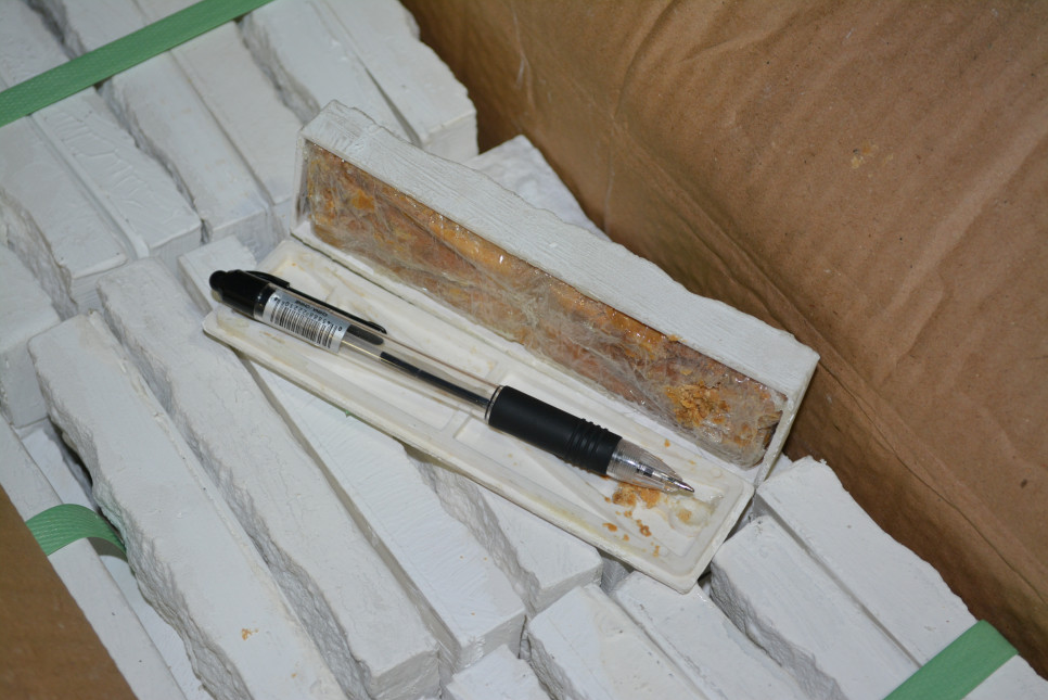 About 29 kilograms of heroin and 604 grams of opium were found hidden in boxes of marble tiles.