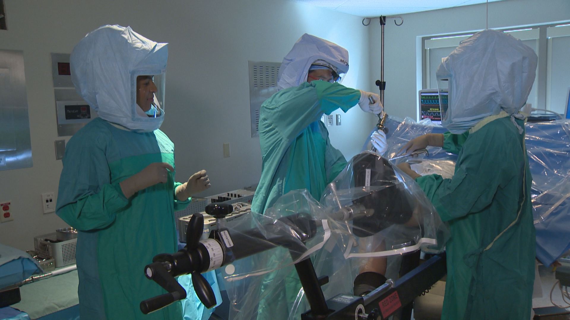 “What that means is that we don’t cut muscles and tendons as much as any of the other approaches. Because of that, patients experience a lot less pain and they’re able to mobilize a lot quicker,” said Dr. Rajrishi Sharma, an orthopedic surgeon at Calgary’s Peter Lougheed Centre.