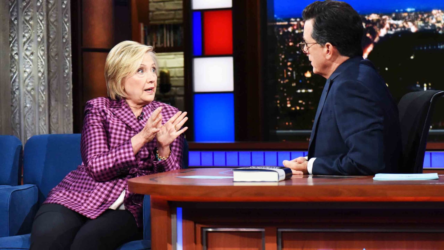 Colbert switched topics to Clinton’s campaign memoir, titled What Happened. “One of the things you say in the book is that in recovering from this and while writing the book, you leaned heavily on Chardonnay,” he said.