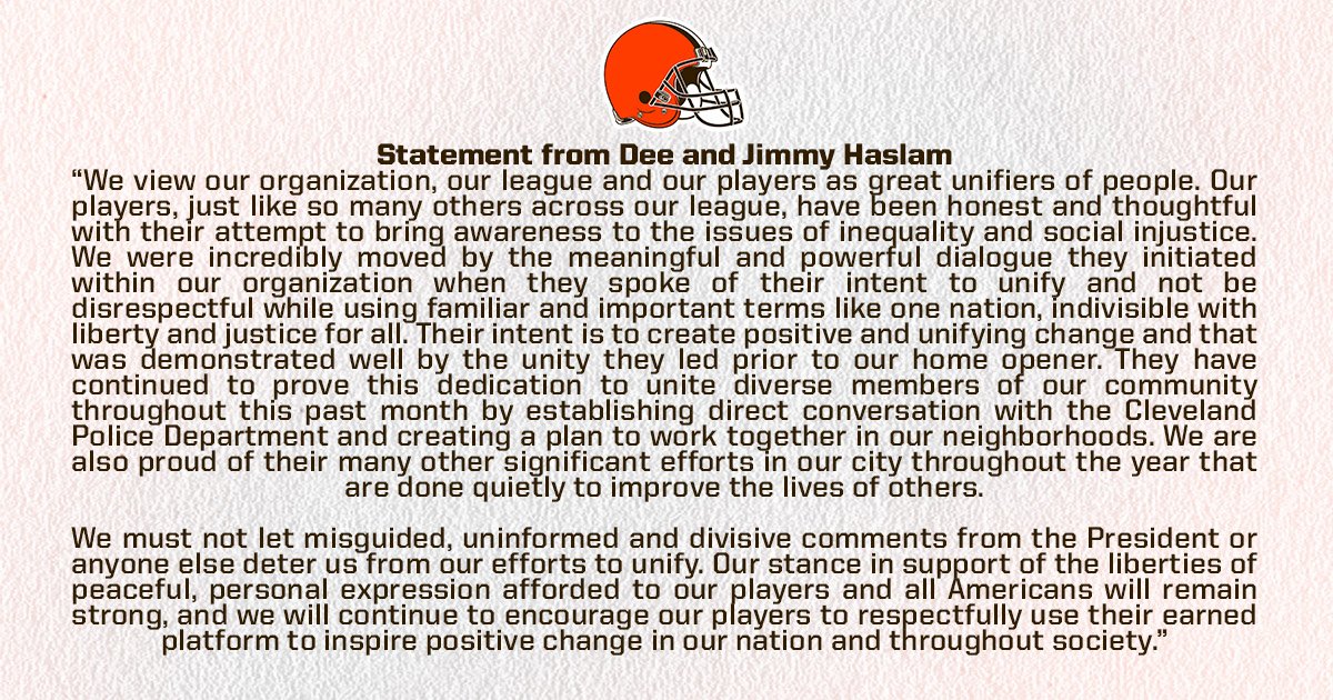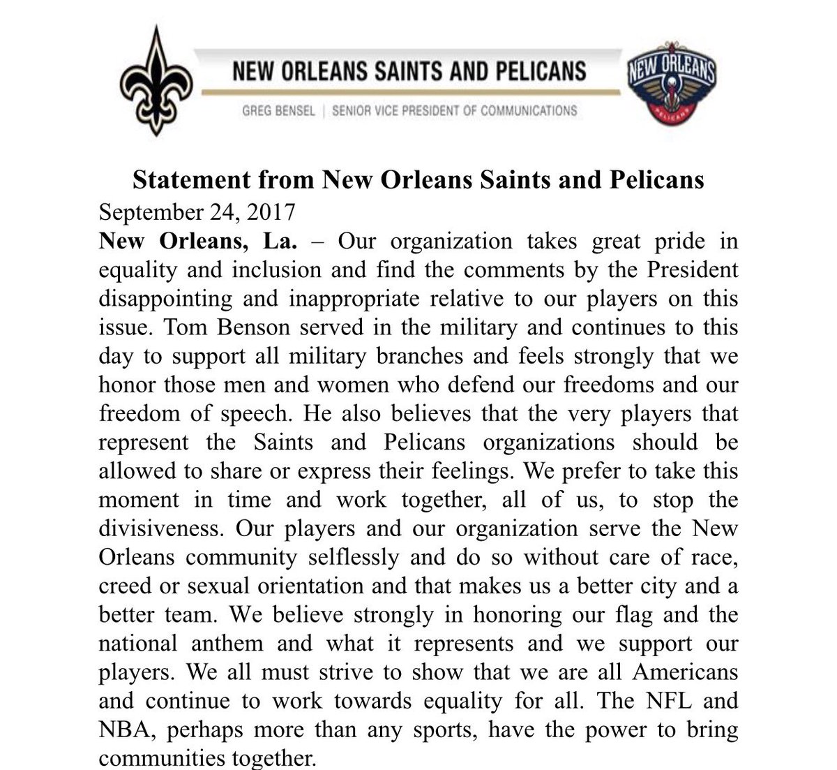 On Saturday, they started speaking out and on Sunday, a flurry of statements from team owners was released.