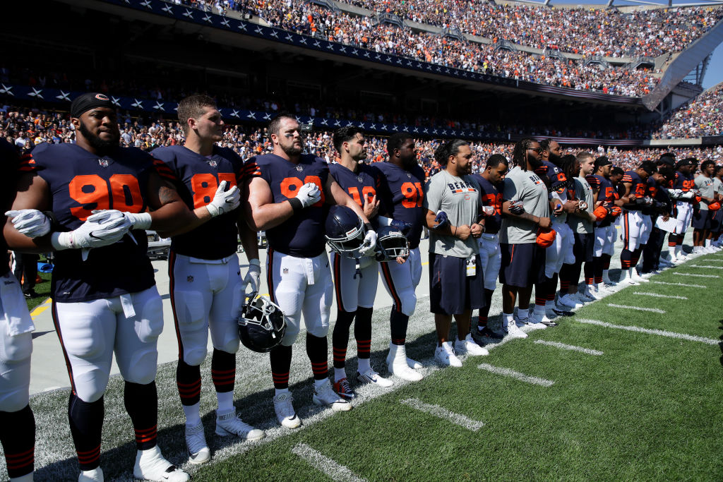 The Pittsburgh Steelers went a step further, and stayed in their change room during the national anthem during their game at Chicago Bears