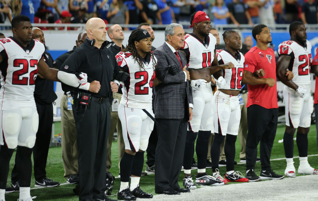 Twenty-seven players took a knee during the anthem, and Jaguar owner Shahid Khan (the only non-white NFL owner) locked arms with the players in solidarity.