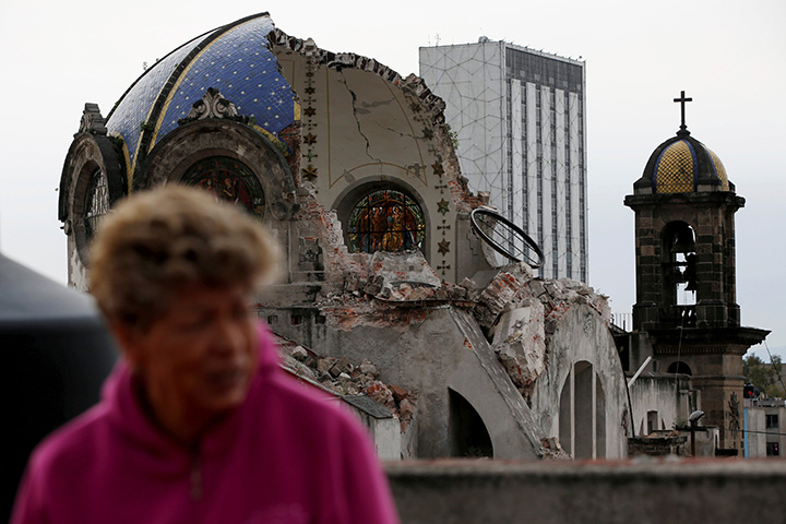 The risk of delayed collapse is real: The cupola of Our Lady of Angels Church, damaged and cracked by the Sept. 19 quake, split in half and crashed to the ground Sunday evening. There were no injuries.