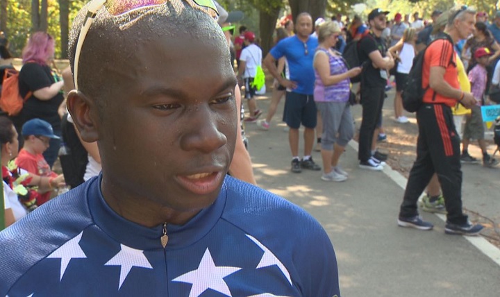 Capt. William Reynolds cycled five kilometres through Toronto’s High Park. His family was on the sidelines, watching and cheering him on with every stride.