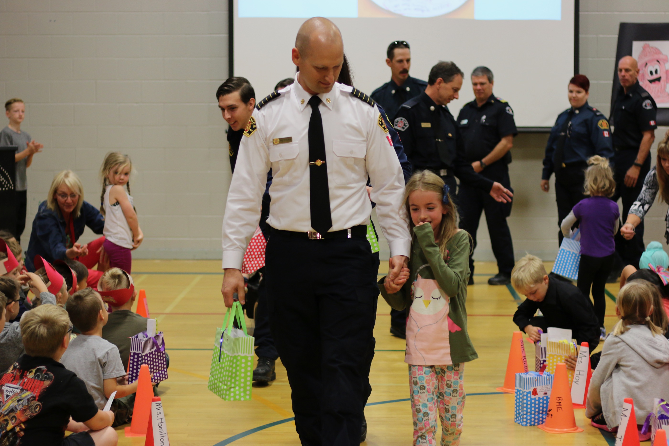Joe Rich fire fighters, the BC Wildfire Service, the RCMP and B.C. Ambulance Service were all on hand for an assembly at Black Mountain Elementary School Thursday morning.