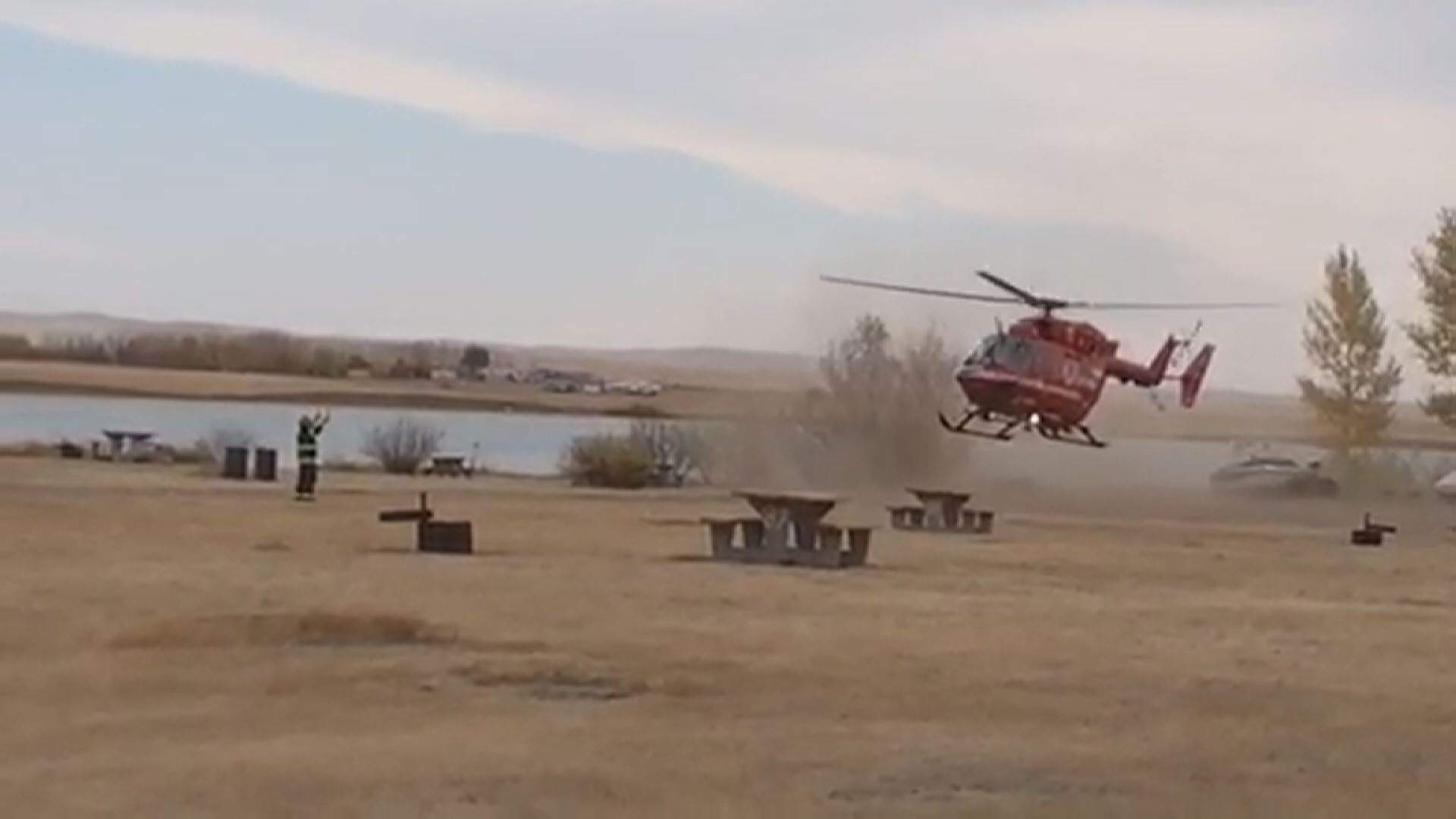 Police along with Alberta Fish and Wildlife officers, Vulcan County and Strathmore Fire, and RCMP Air Services searched the lake until light conditions halted efforts. Several boats and sonar were also utilized.