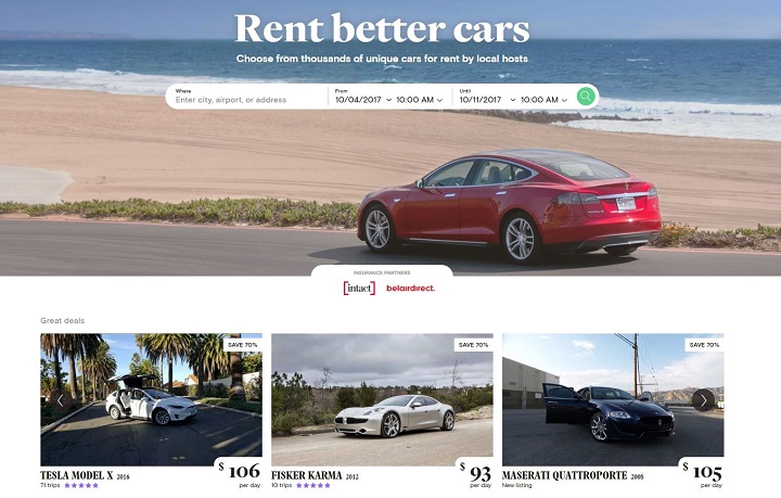 The service allows car owners to register their vehicles online and make them available for short-term rentals for others.