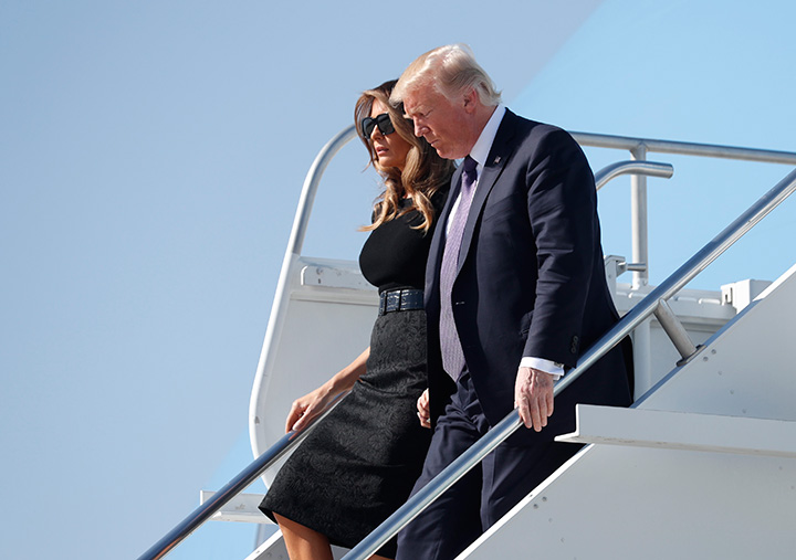 Trump’s first stop was the University Medical Center, where he was speaking privately with victims of the Sunday night shooting rampage, their families, and medical professionals. On his trip from the airport, the president’s motorcade drove past the Mandalay Bay hotel where the gunman fired down into the concert crowd. The president also drove past his own Trump hotel.