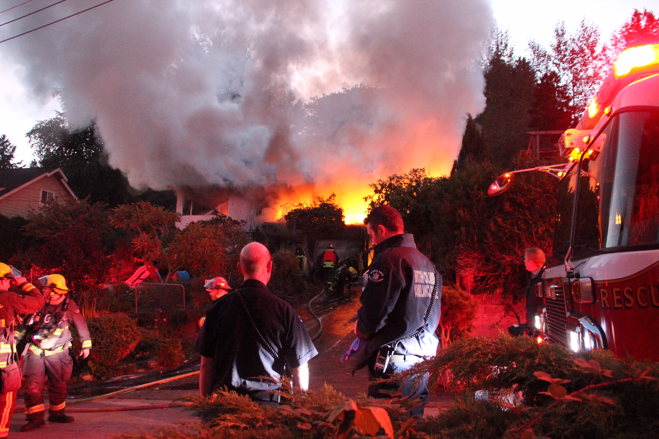 At least seven fire trucks were called to the home on 125A Street and 104 Avenue early Wednesday morning.