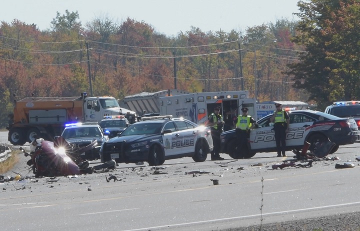 Around 9:55 a.m., the vehicle was involved in a head-on collision with a transport truck on Highway 6 and Campbellville Road.