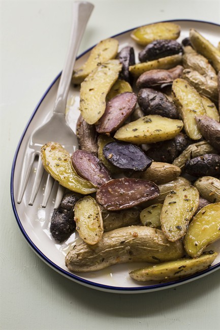 - Add potatoes to a large bowl. Toss to create a paste on potatoes. Add reserved oil, salt and pepper.