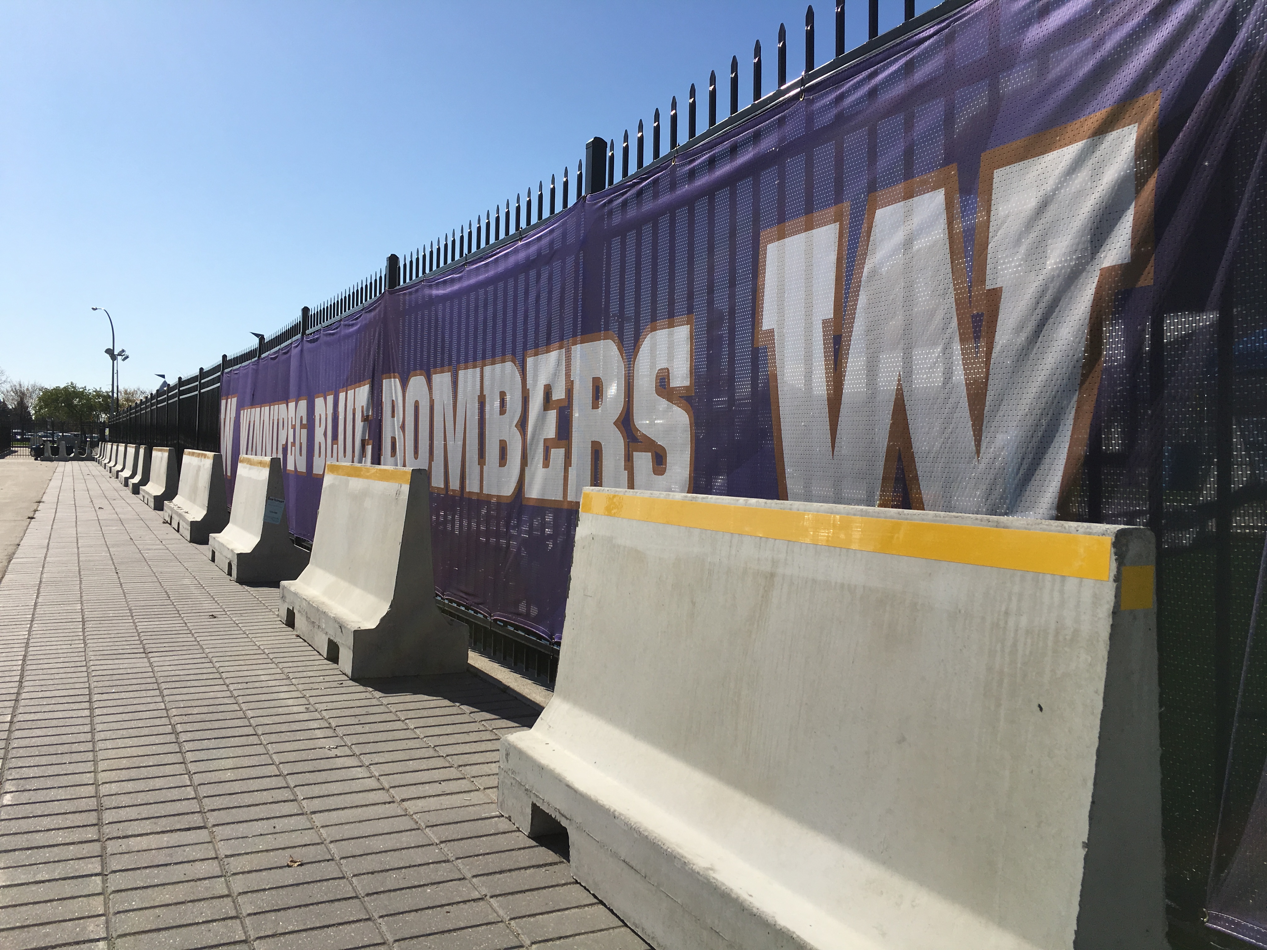 The heavy concrete barriers, weighing 1200 pounds each, are a new addition to keep fans attending Winnipeg Blue Bomber games and large events at IGF feeling safe.