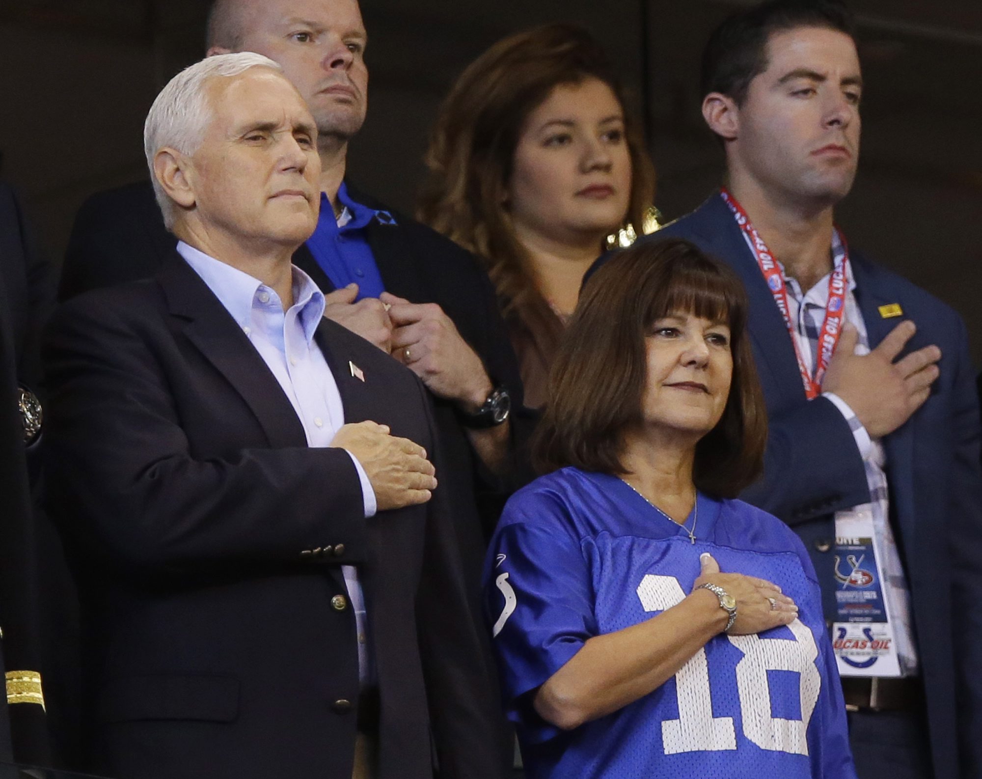 Pence, the former governor of Indiana, had previously tweeted a picture of himself at another Colts game and said he was excited to watch the ceremony honouring retired quarterback Peyton Manning, who had a statue unveiled outside the stadium Saturday.