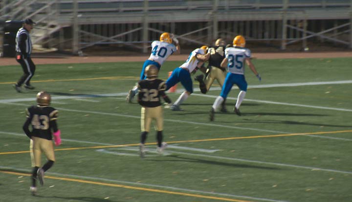 The Hilltops’ Adam Machart scored a touchdown to retake the lead 17-14 in the third quarter at Clarke Park.