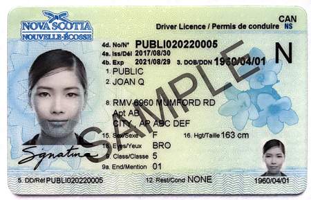 A sample of the new Nova Scotia driver's licence announced on Oct. 10, 2017. Government of Nova Scotia