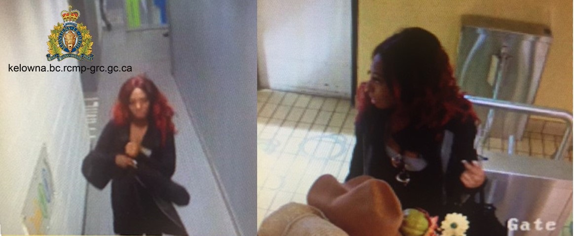 Kelowna RCMP have released surveillance camera images of one of two suspects in a series of thefts Tuesday from fitness centres in the city.