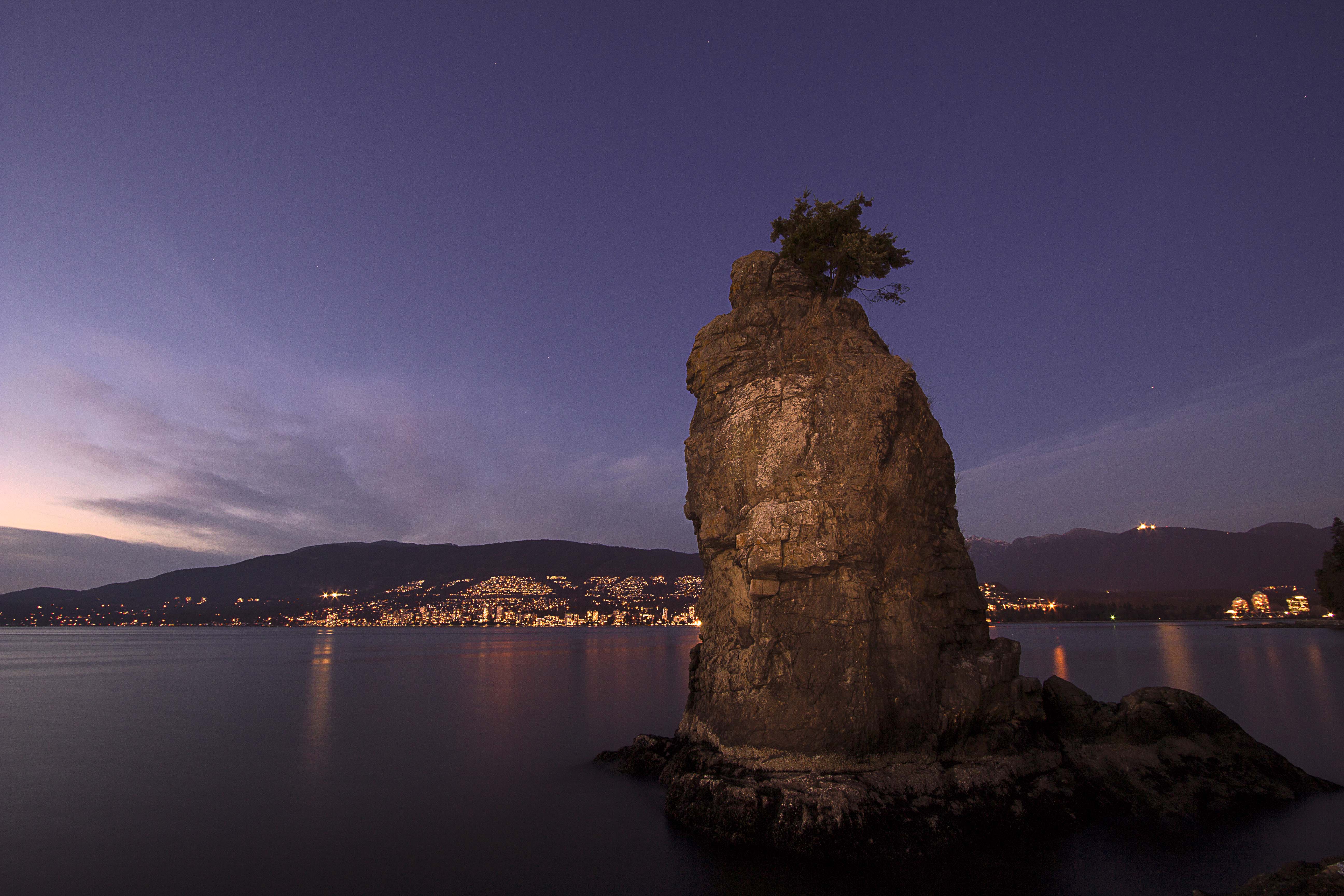 The rock is located in Stanley Park between Third Beach and the Lions Gate Bridge.