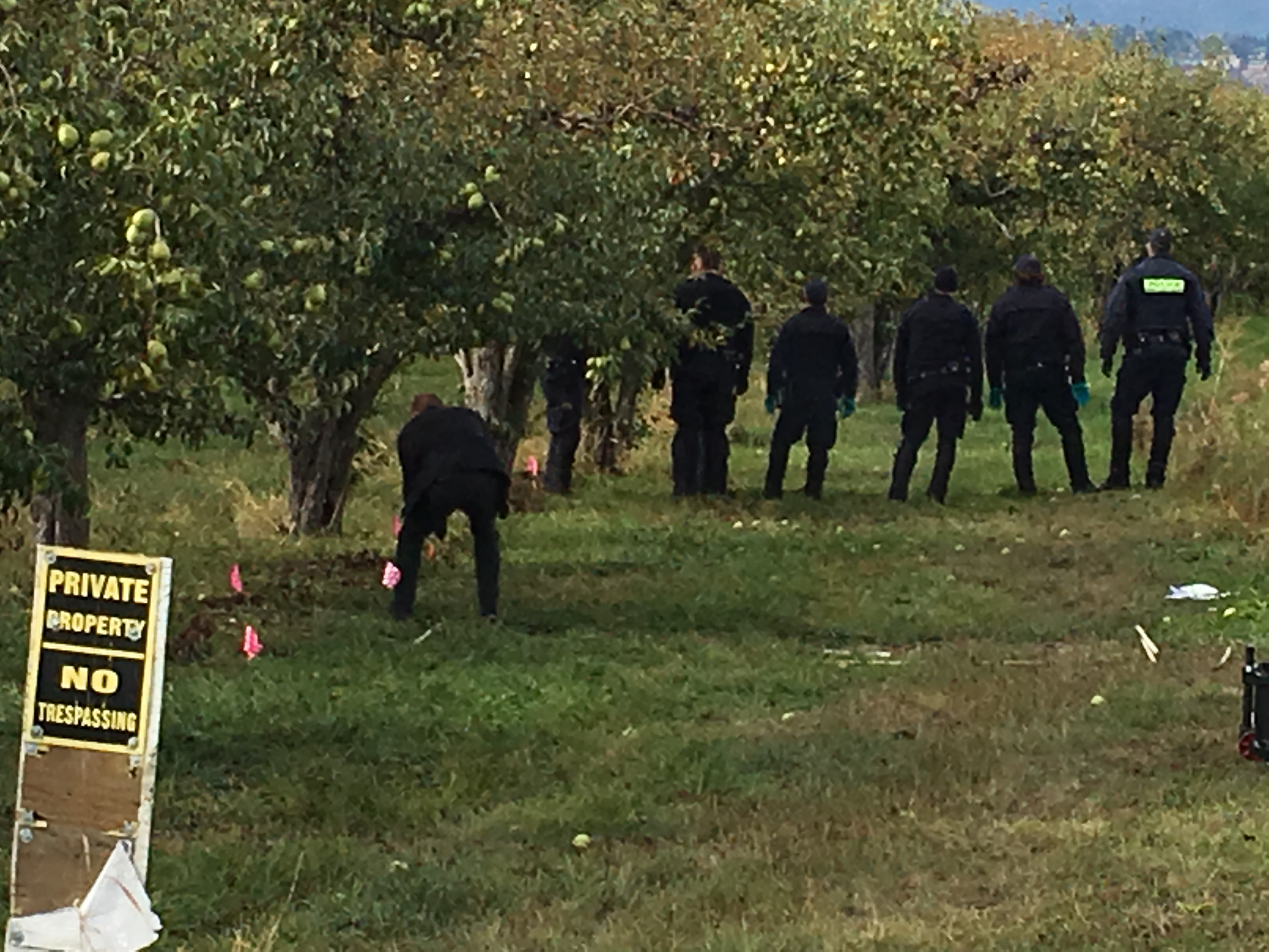 RCMP were called before 11 a.m. to an orchard located in the 2100 block of Cooper Road after a body had been found.