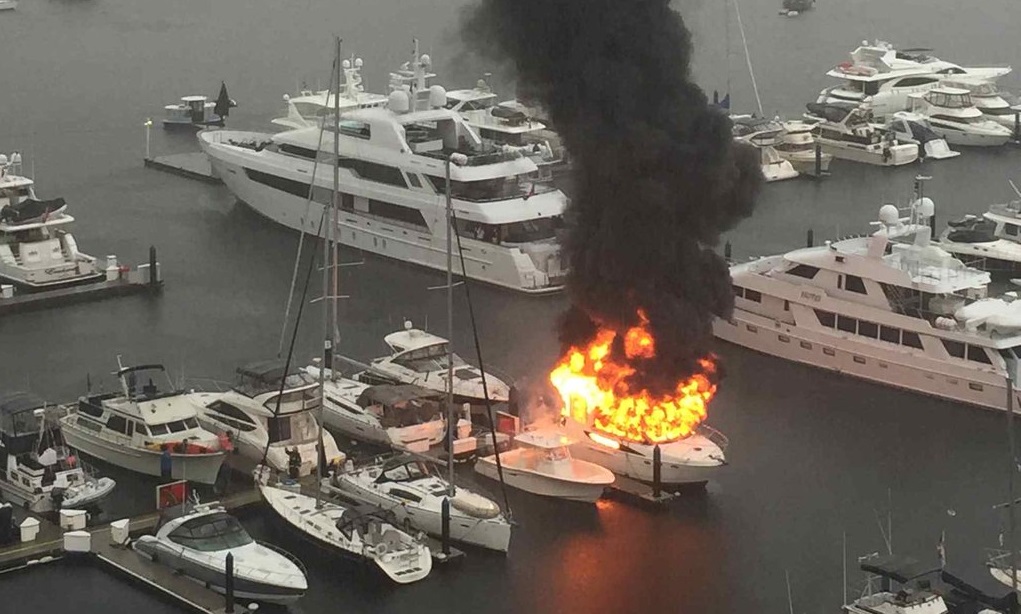 Thick black smoke pouring from the marina on Marinaside Crescent was visible from kilometres away.