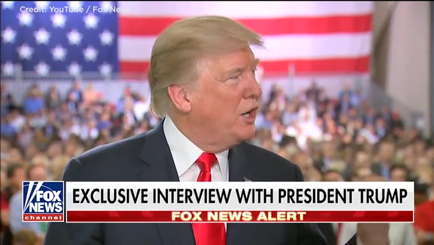 Trump was speaking with Hannity at an Air National Guard base in Middletown, Penn. when the bugle call of “Retreat” sounded during their interview. Trump continued to discuss his tax reform plan over the sound of the bugle before expressing confusion as to what was going on.