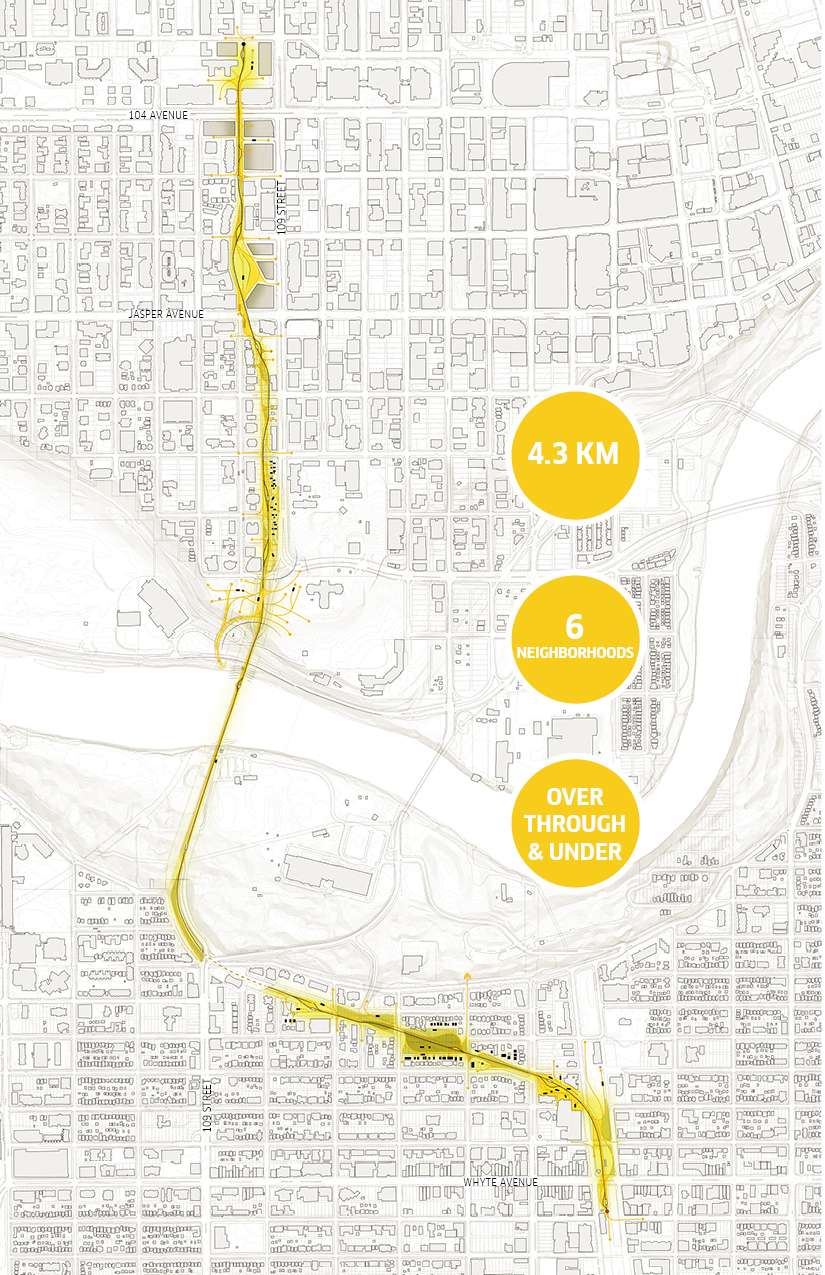 The north end of the line would start at MacEwan University, making its way through downtown, over the North Saskatchewan River, coming to an end at Whyte Avenue and Gateway Boulevard. The line would also include the ability to cross the river along the upper deck of the High Level Bridge. The idea is to transform neighbourhoods along the way.