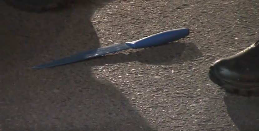 Police closed the area for an investigation during which they say they located a weapon (a large knife) at the scene.