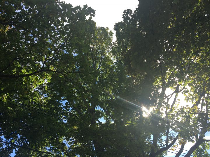The tree-lined street sits in a lot of shade due to the canopy many of the maples provide.