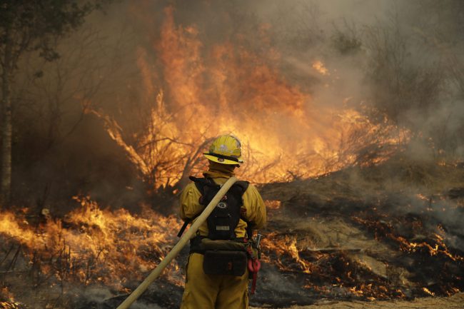 On the ground, prison inmates were helping firefighters – sometimes digging lines to help contain fires, other times preparing meals at command centers, always watched over by guard.