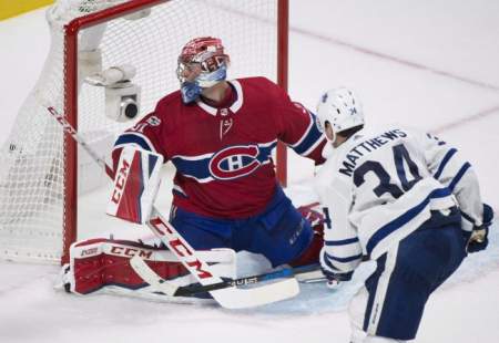 Matthews finished a two-on-one counterattack with William Nylander, beating Carey Price with a bullet shot from the left circle for his fifth goal in five games this season.