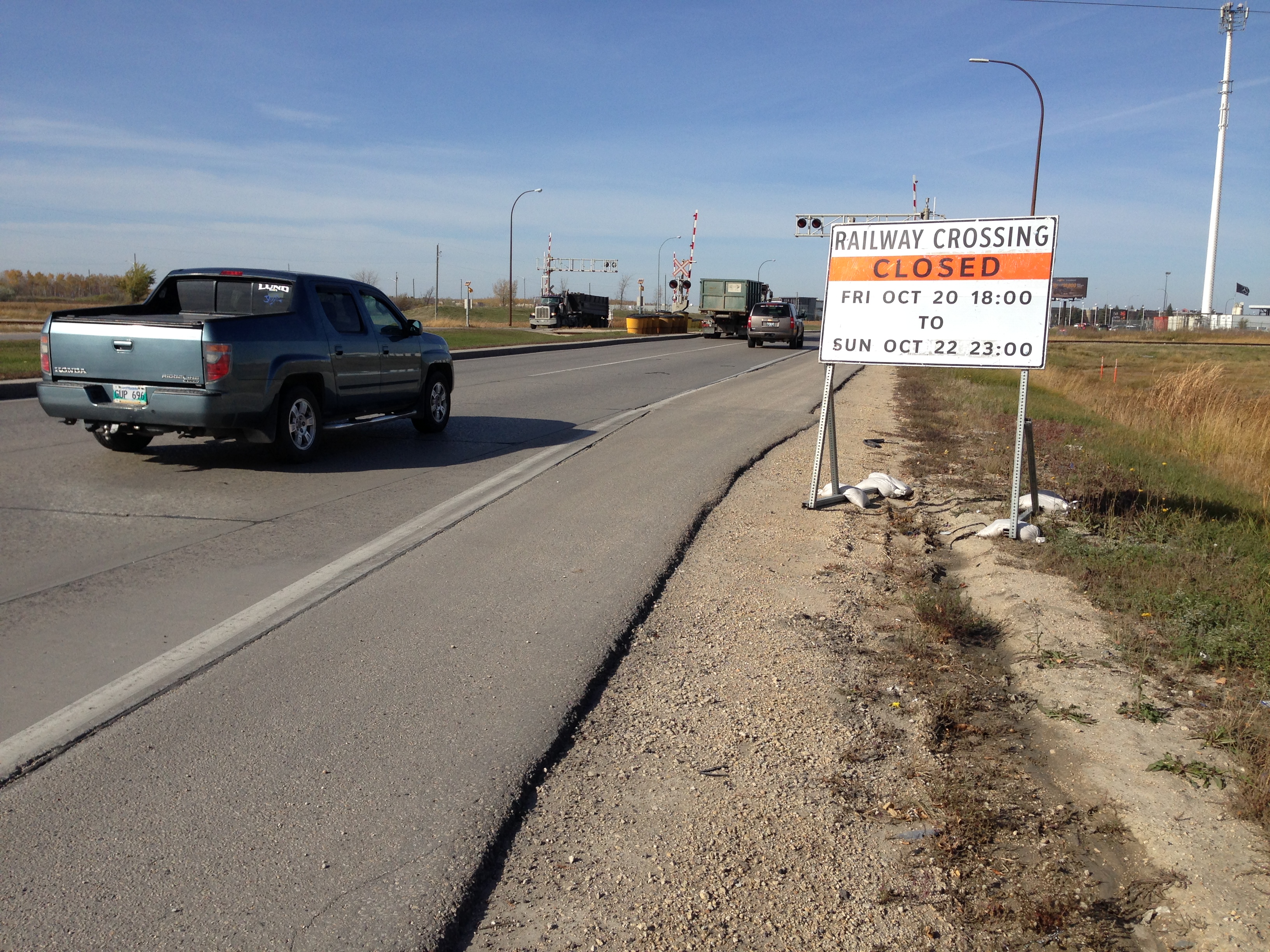 The stretch will be completely closed to all traffic to allow for railway crossing repairs beginning at 6 p.m. on Friday, October 20th.