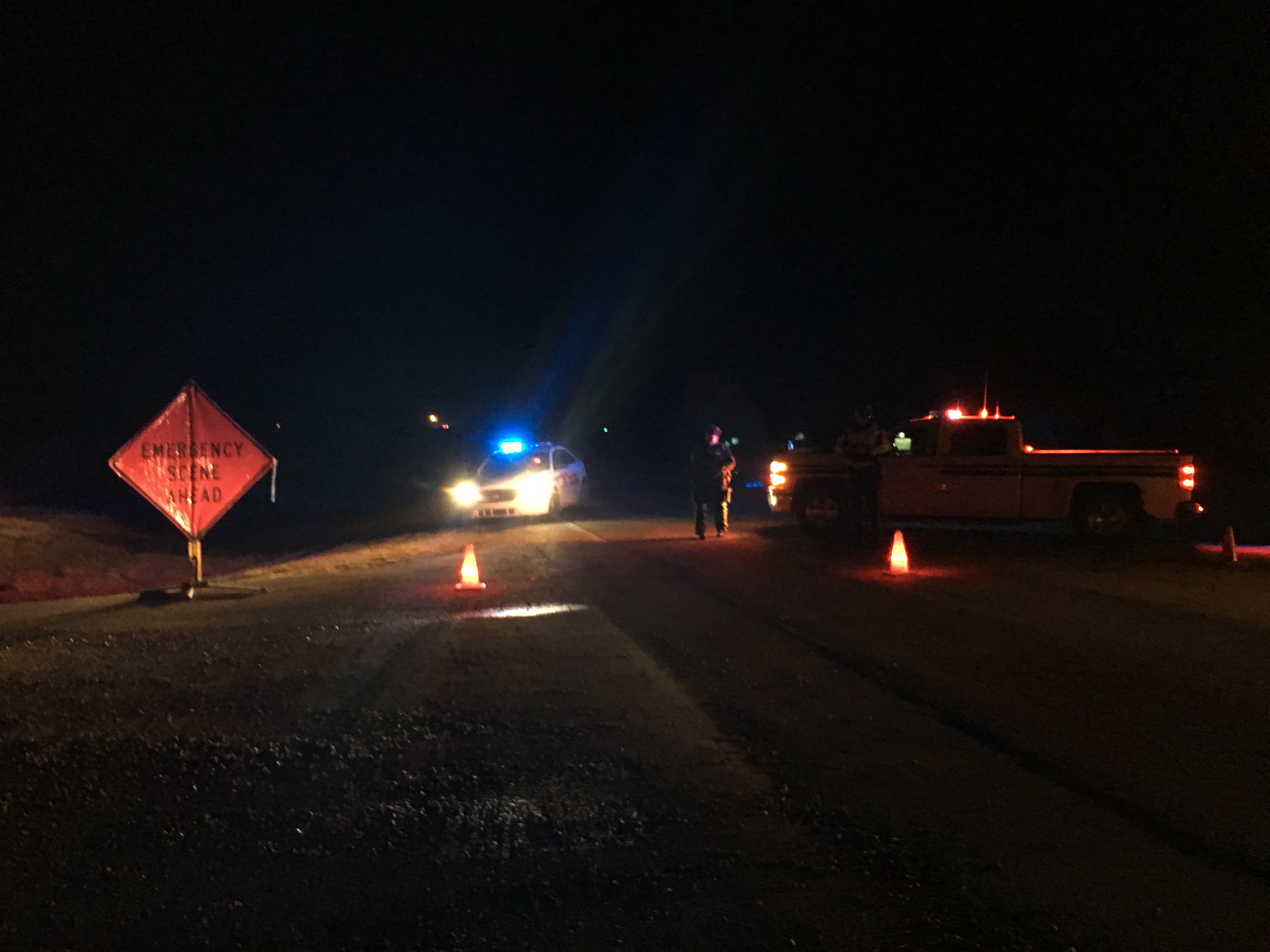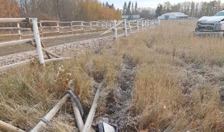 Two of the three people in the vehicle ran away and broke into a nearby home with young children inside, police said. The suspects stole some cellphones before heading to a neighbouring farmhouse, breaking in and stealing a pickup truck, officers added.