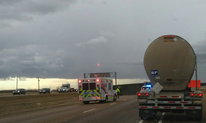 Late Tuesday afternoon, the RCMP tweeted it was responding to several semi-truck rollovers on Highway 2 between Calgary and Edmonton because of a wind storm.