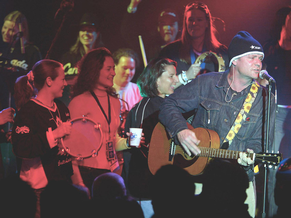 At the 2002 Winter Olympics, Downie pulled some members of the gold-medal winning Canadian women’s hockey team on stage during a concert at the University of Utah.