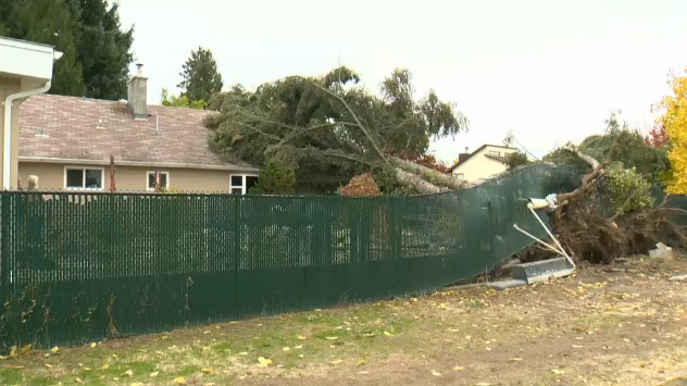 When he was a child, Chase helped plant pine trees on the property but on Tuesday, some of those trees, now enormous, came crashing down as a powerful windstorm swept through the Okanagan.