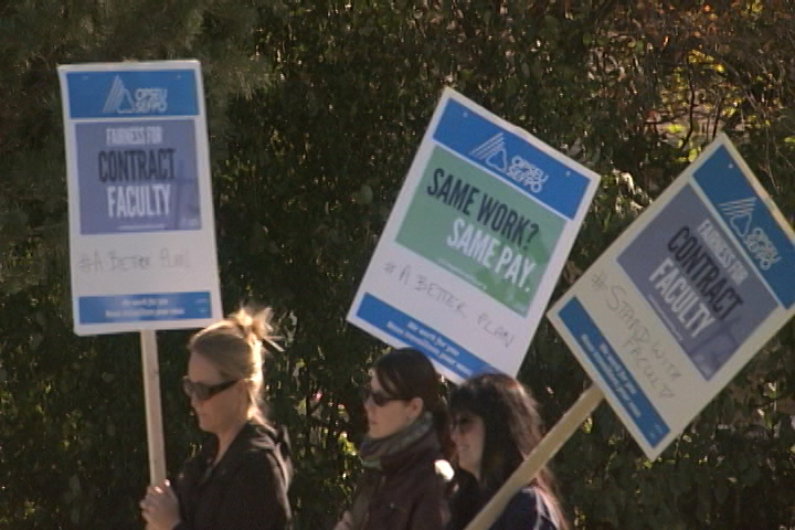 The Ontario Public Service Employees Union or OPSEU is pressing colleges for fewer part-time and contract positions. However, when contract work is required they’re asking for equal pay to their full-time counterparts and better work spaces.