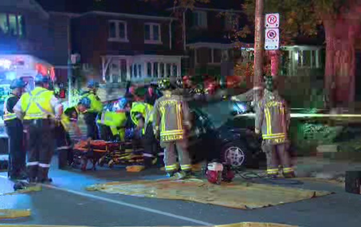 Toronto Fire said the vehicle smashed into a light pole and crews needed the jaws-of-life to free him from the wreckage.