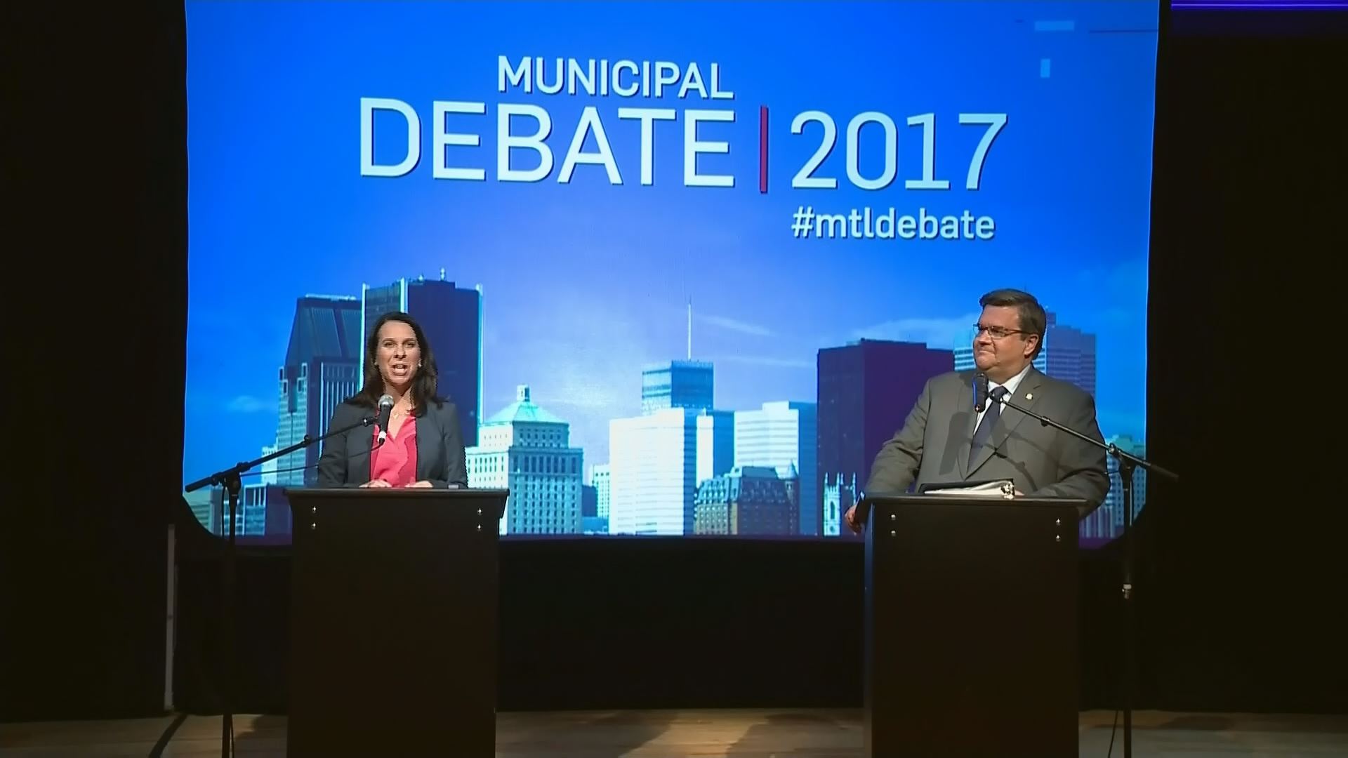 Montreal’s mayoral candidates, incumbent Denis Coderre and Projet Montréal leader Valérie Plante, went head-to-head in an English-language debate Monday night at the Oscar Peterson Concert Hall at Concordia University’s Loyola campus.
