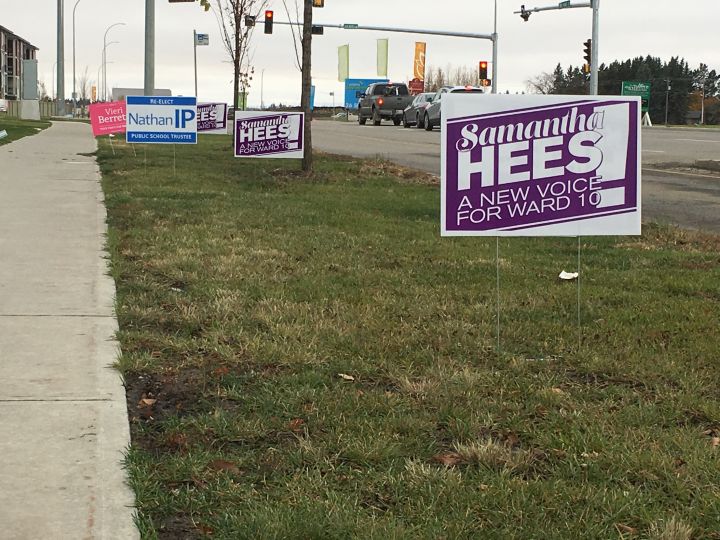 A record 131 people ran for mayor, council or school trustee and it appears most of them followed the city’s bylaws for where they were allowed to put up their campaign signs.