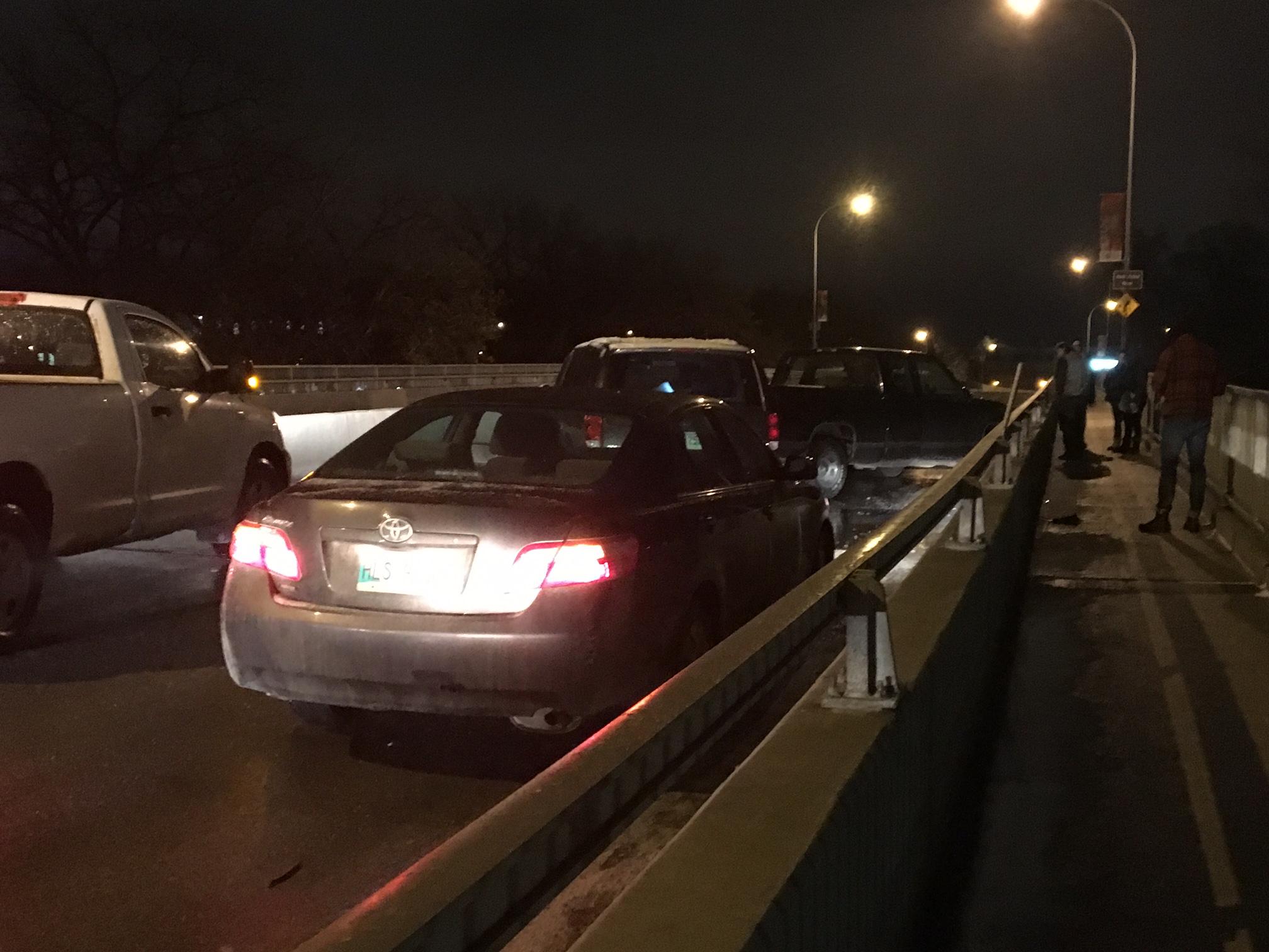 Roughly 30 police units were deployed to collisions throughout the night. The affected bridges had to wait to reopen until once they had been sanded, which meant up to four hours of closures.