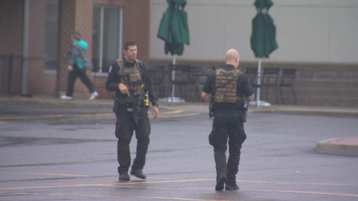 Armed officers and the K9 unit could be seen combing the area around the Uptown Centre strip mall. Police say there were no injuries as a result of the robbery.