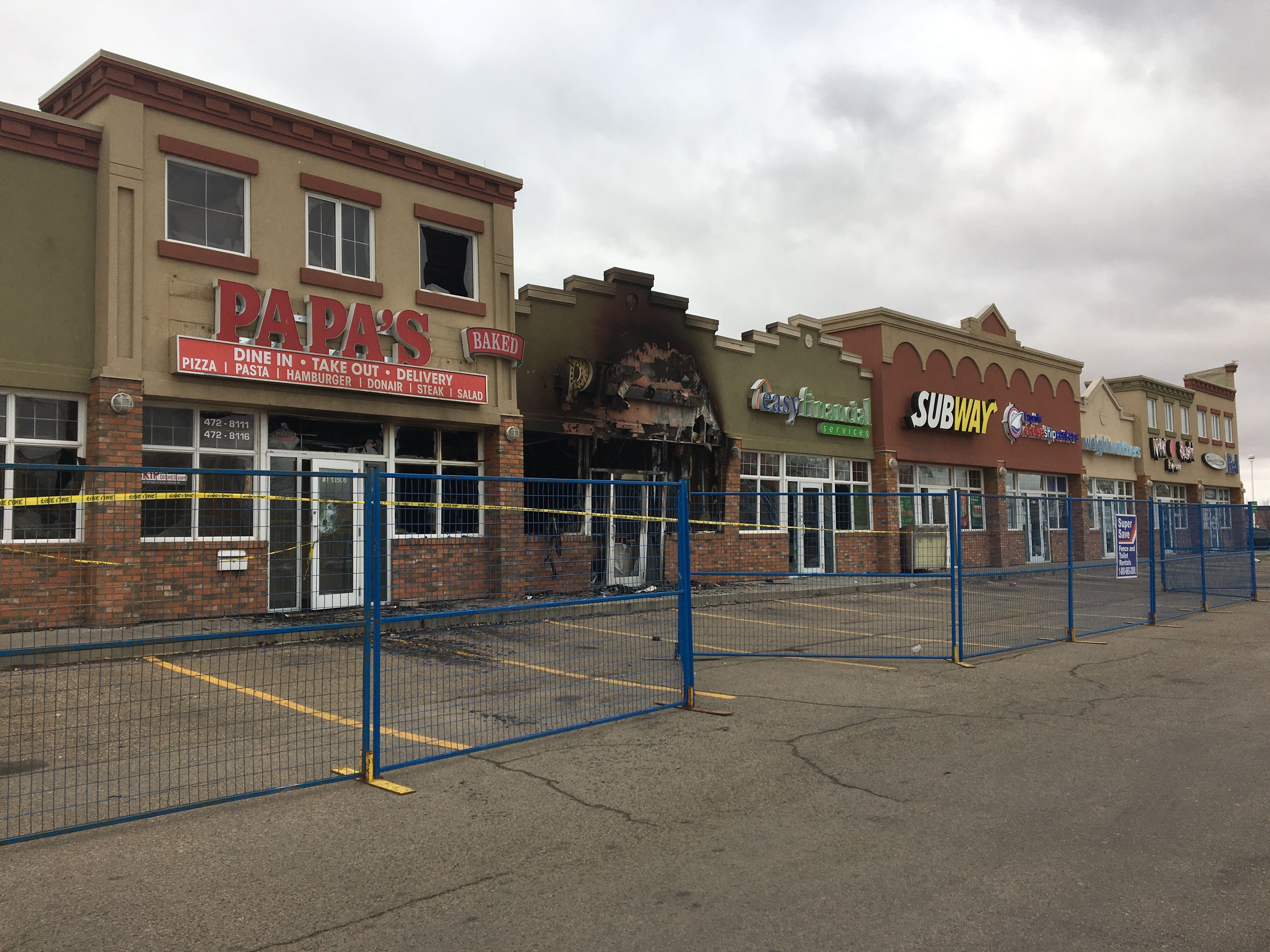 A call was made to 911 at around 1 a.m. about a fire at Pappa’s Baked Pizza on 135 Avenue and Victoria Trail.