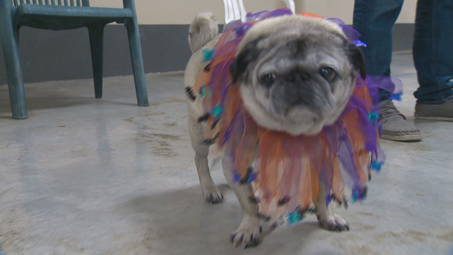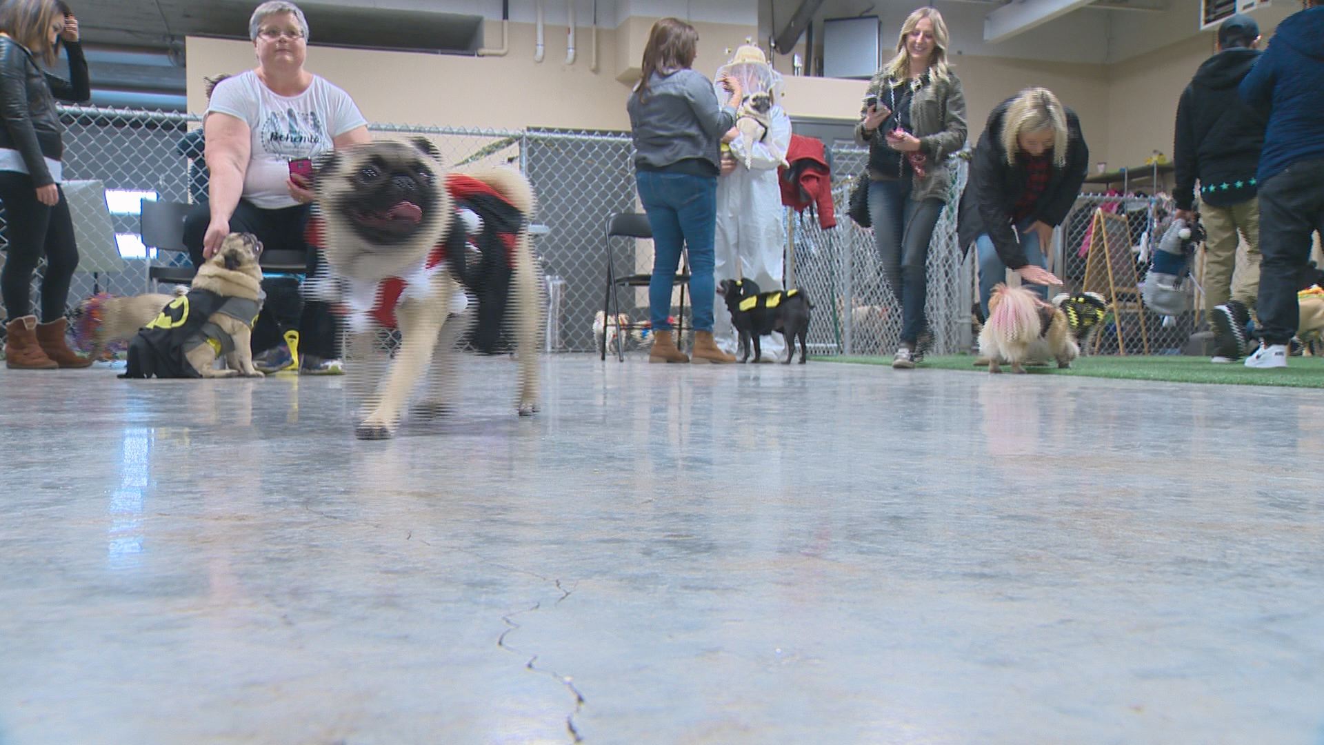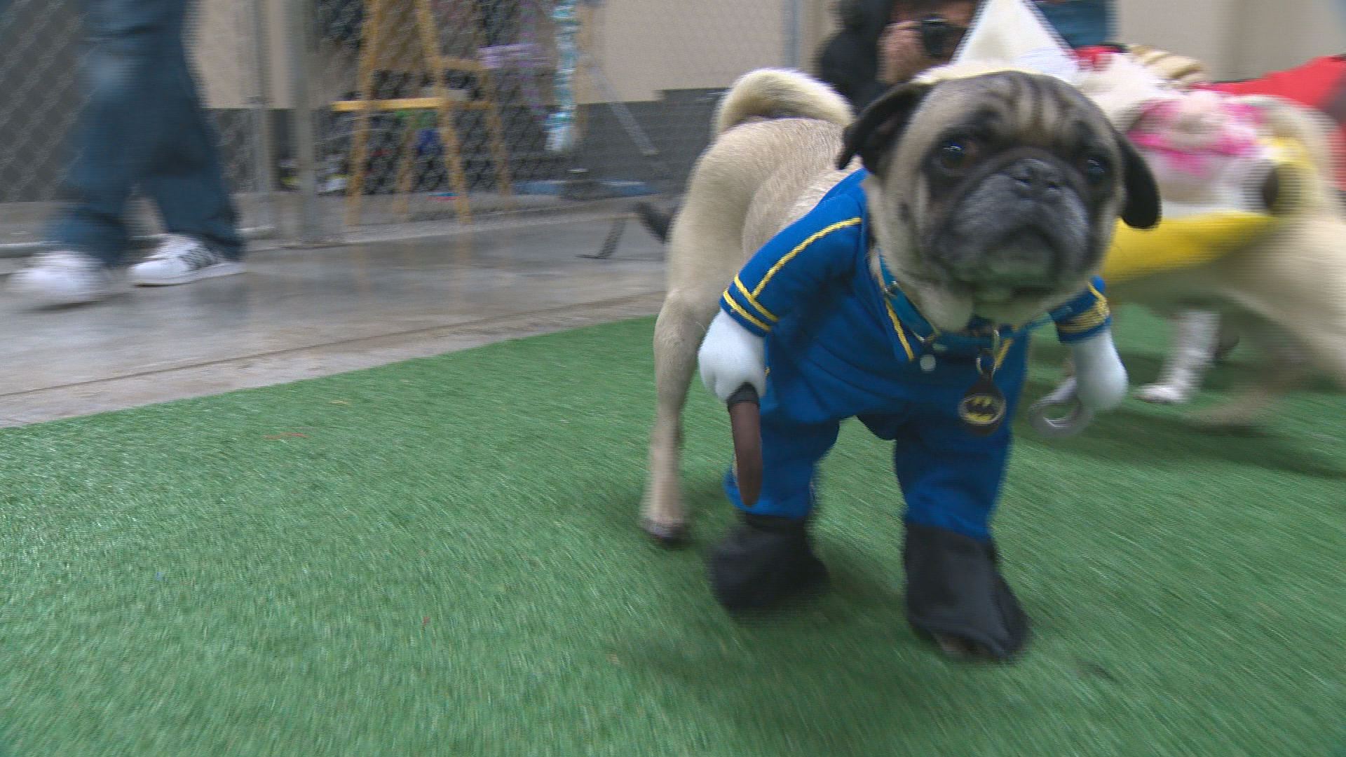 Dozens of Edmonton pug owners dressed their best friends up in costumes for a special “Pug-o-ween” celebration at the Lucky Donkey indoor dog park.