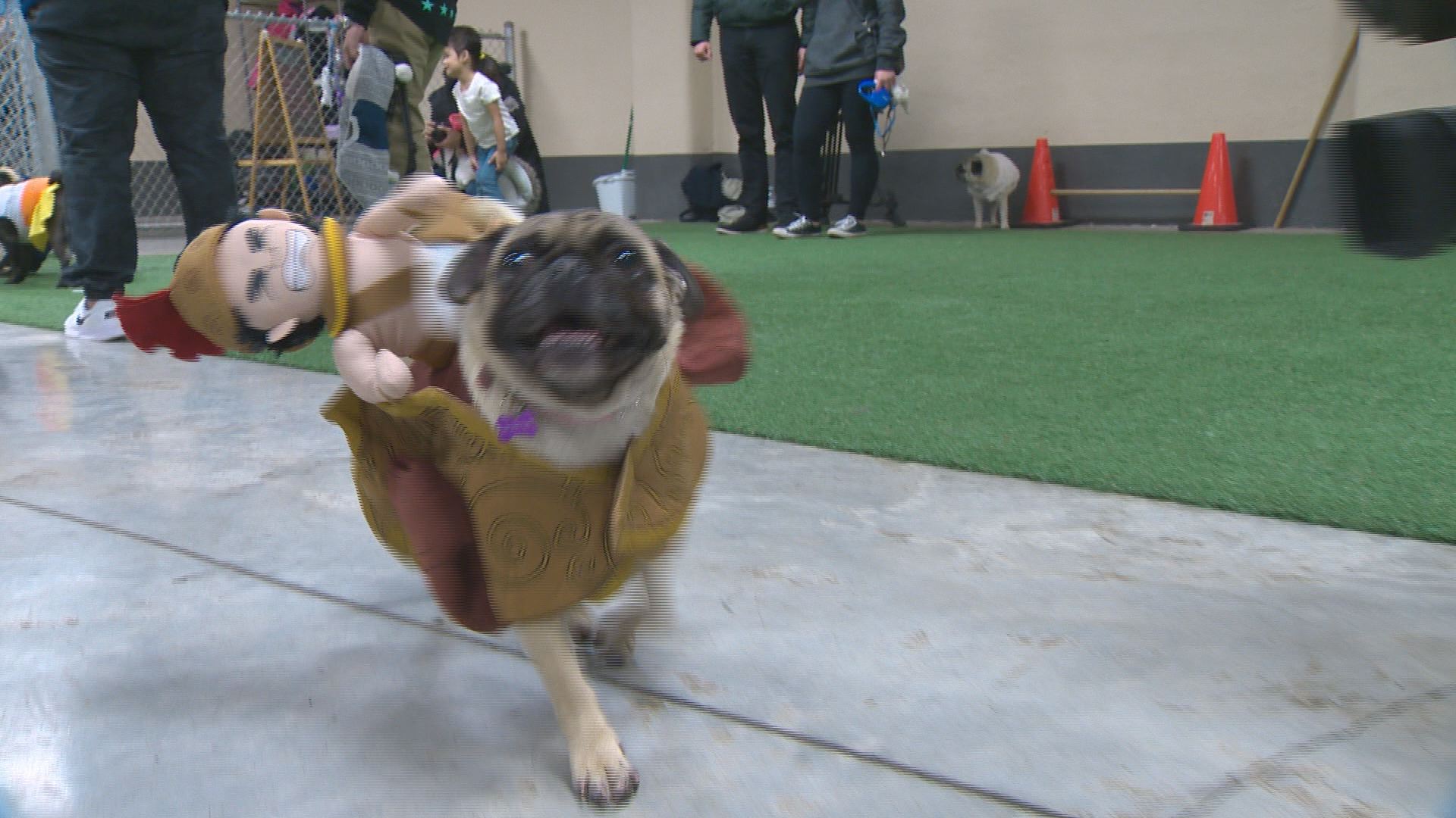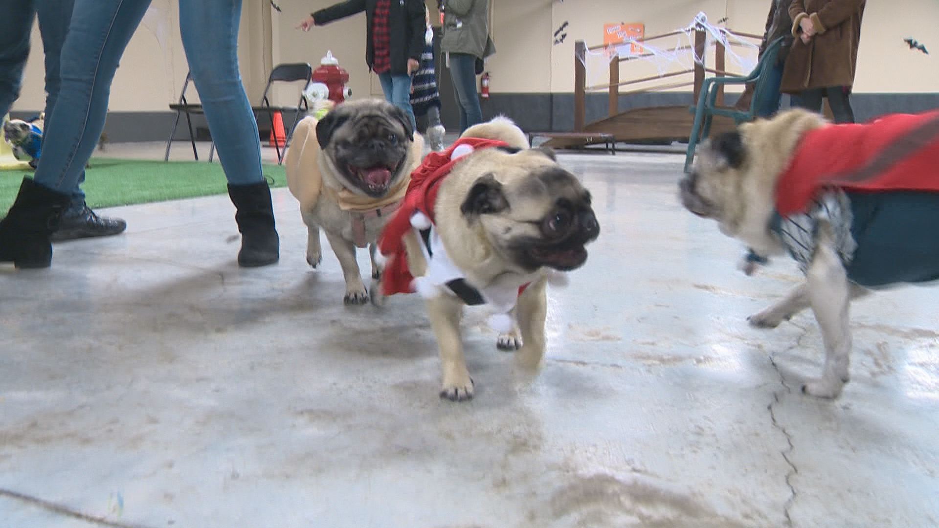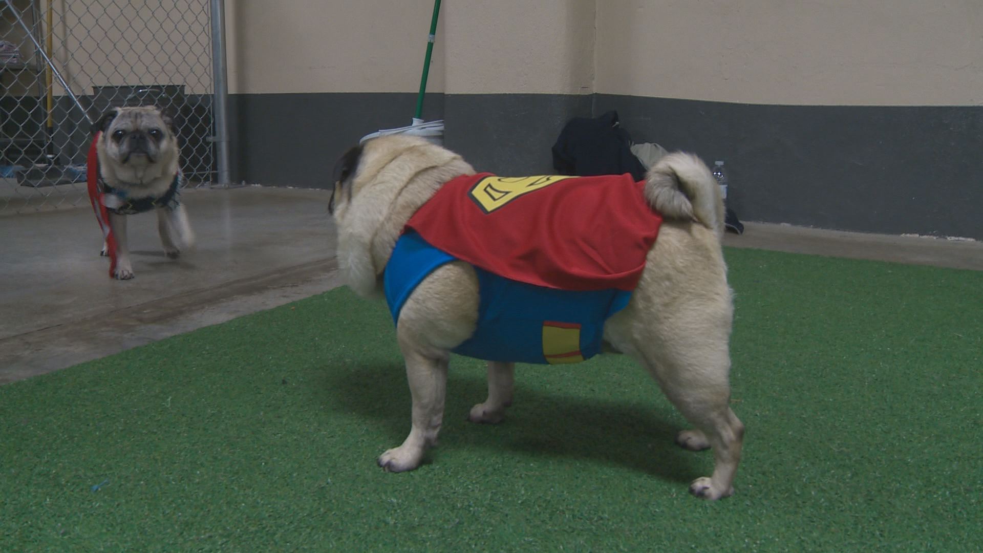 Dozens of Edmonton pug owners dressed their best friends up in costumes for a special “Pug-o-ween” celebration at the Lucky Donkey indoor dog park.
