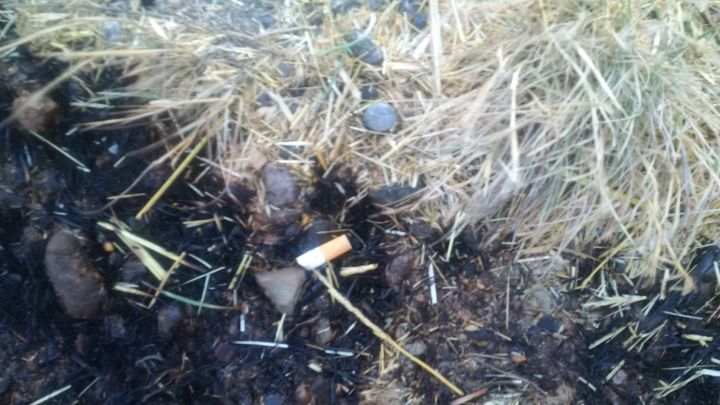 Investigators extinguished the fire and found the source: a cigarette butt along the shoulder of Highway 9 near Range Road 270.